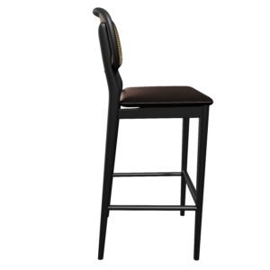 Modern High Back Wooden Rattan Bar Stool Chair Cane Wicker Dining Chair for Restaurant Cafe For Restaurant Coffee Shop YJBW011
