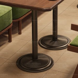 Rectangle Solid Wood Tabletop with Dual Round Cast Iron Bases | Commercial Long Dining Table YJT017