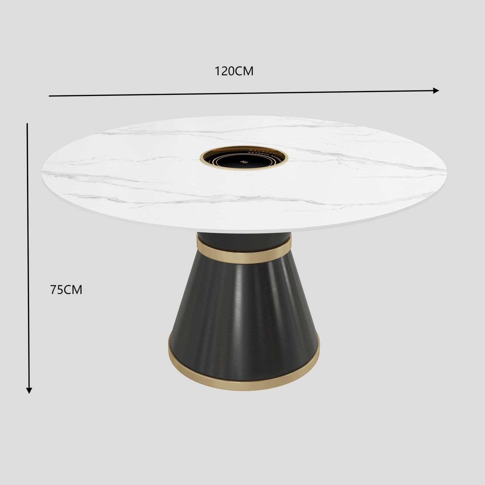 Italian Modern Furniture Round Shape Rock Plate Slab Table With Electromagnetic Furnace Hole For Restaurant Coffee Shop YJT004