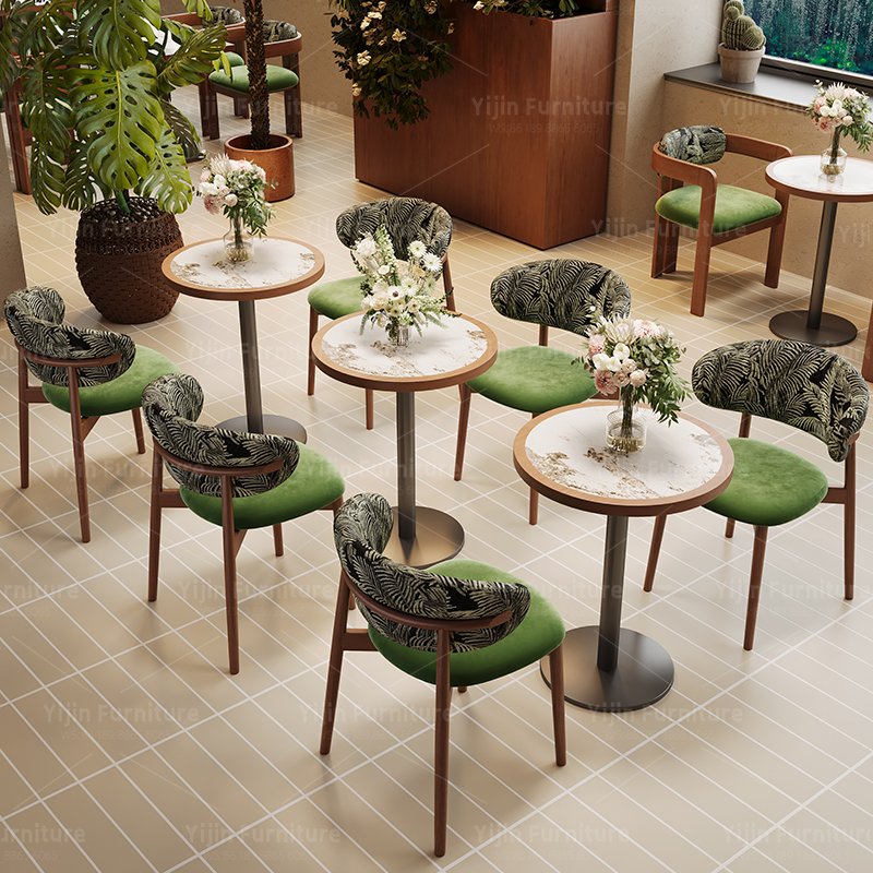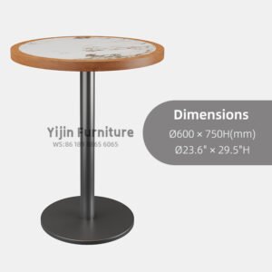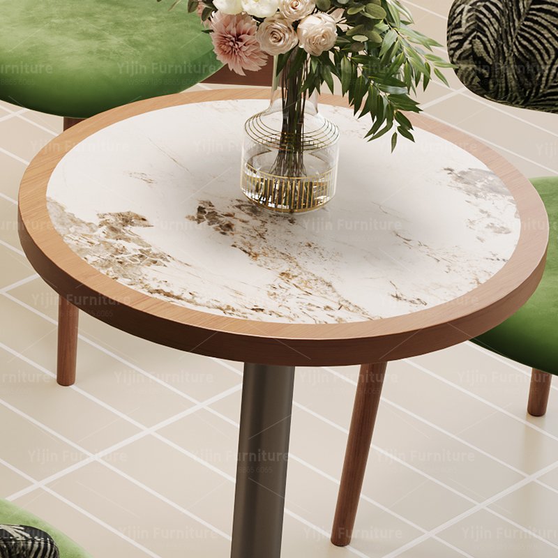 Vintage Round Dining Table with Sintered Stone Wrapped Wood Top and Metal Base | Commercial Café Table YJT019